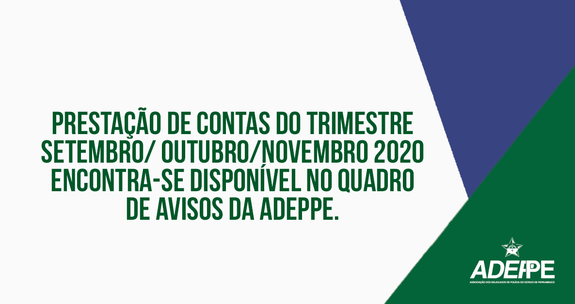 A prestação de contas do trimestre Setembro, Outubro e Novembro de 2020 encontra-se publicada no quadro de avisos do térreo. Todos os livros encontram-se na tesouraria à disposição dos associados.